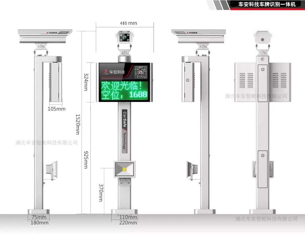 自帶五字雙行高亮單綠LED顯示屏 自帶光感LED補(bǔ)光燈 自帶可編輯語音模塊 自帶車輛檢測器 自帶車牌識(shí)別攝像機(jī) 可根據(jù)需要配置網(wǎng)絡(luò)交換機(jī) 面板配置二維碼信息