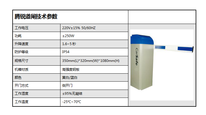 騰銳系列道閘采用高強度鋼板經表面噴涂制作,整個道閘采用模塊化設計,可以根據需要配置標準機芯、快速機芯和高速機芯,來實現不同的速度和性能要求。